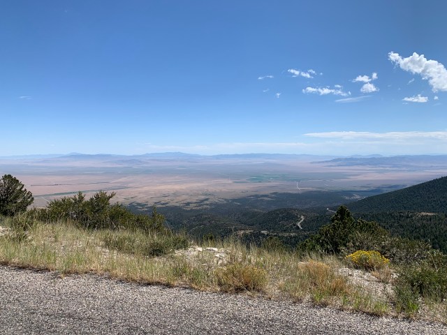 We drove the Wheeler Peak Scenic drive. This is an 18 mile drive that starts at 6000’ elevation and ends at 10,300’. We stopped at the scenic overlooks and campgrounds on the way up. Coming back down the road we stopped at the Upper Lehman Creek Campground and ate sandwiches for lunch.