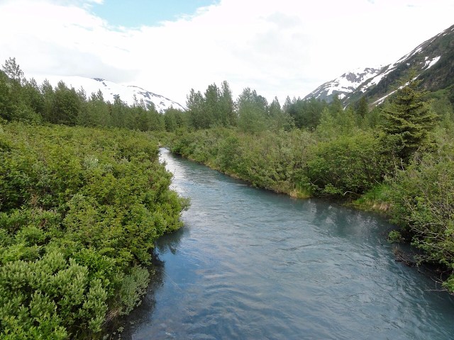 It was a little more than an hour driving to get to the Portage Glacier road. We drove up that road and found the last campsite at Williwaw campground. We paid $18 for the night. We had eaten a late lunch so we were not very hungry. We went on a 2 mile hike and got back to the RV at around 9:00 pm. We were all pretty tired so we went to bed early. Here it is about 9:15 pm and still very light outside.