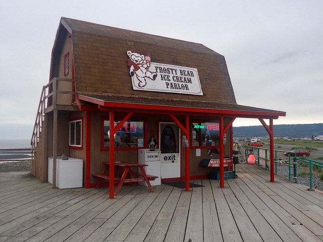 Last night it rained for most of the night, but it stopped by the time we woke up. It seemed like it was light all night long. After breakfast we walked to a few more shops. While we were driving off the spit we saw a bald eagle perched just off the road. We left Homer about 11:00 am. We drove to Soldotna and stopped at Fred Meyers to get $150 of gas and some groceries. We then continued on to Seward, with a stop for lunch at a rest stop just past Cooper’s Landing.