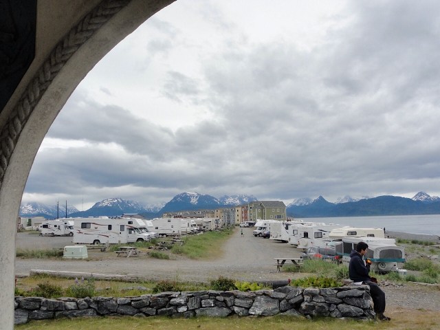 After the museum we drove our campground at the end of the Homer Spit. The Homer Spit is a long and skinny section of land at the end of the peninsula. We got a spot on the beach for $32. It was not great but it was better view than the other sites. The sites were not well maintained and very close.