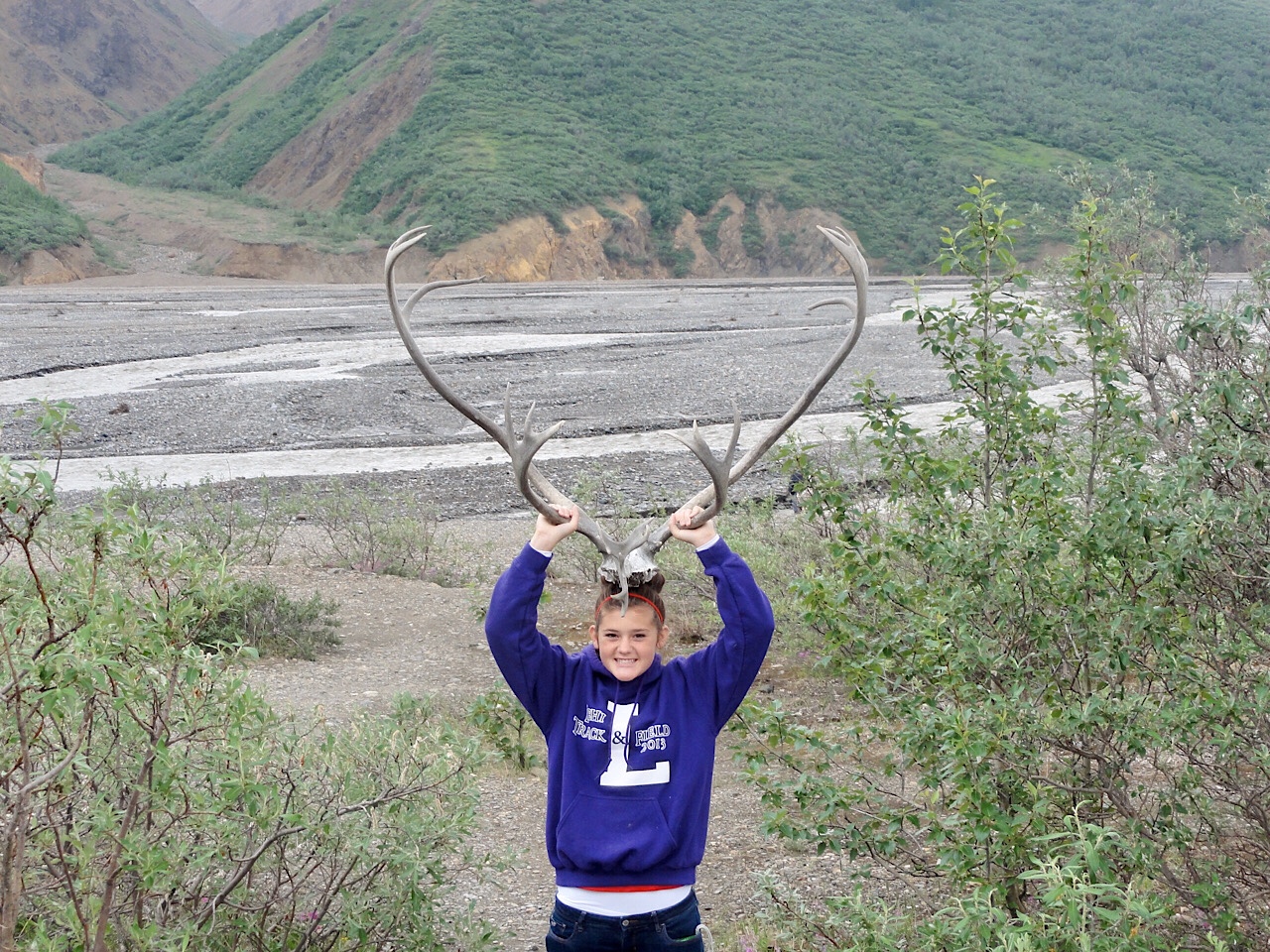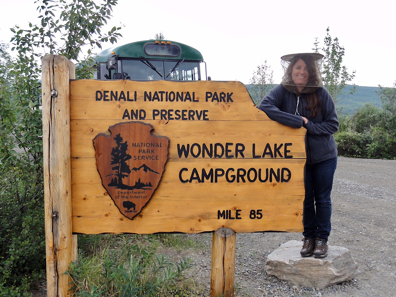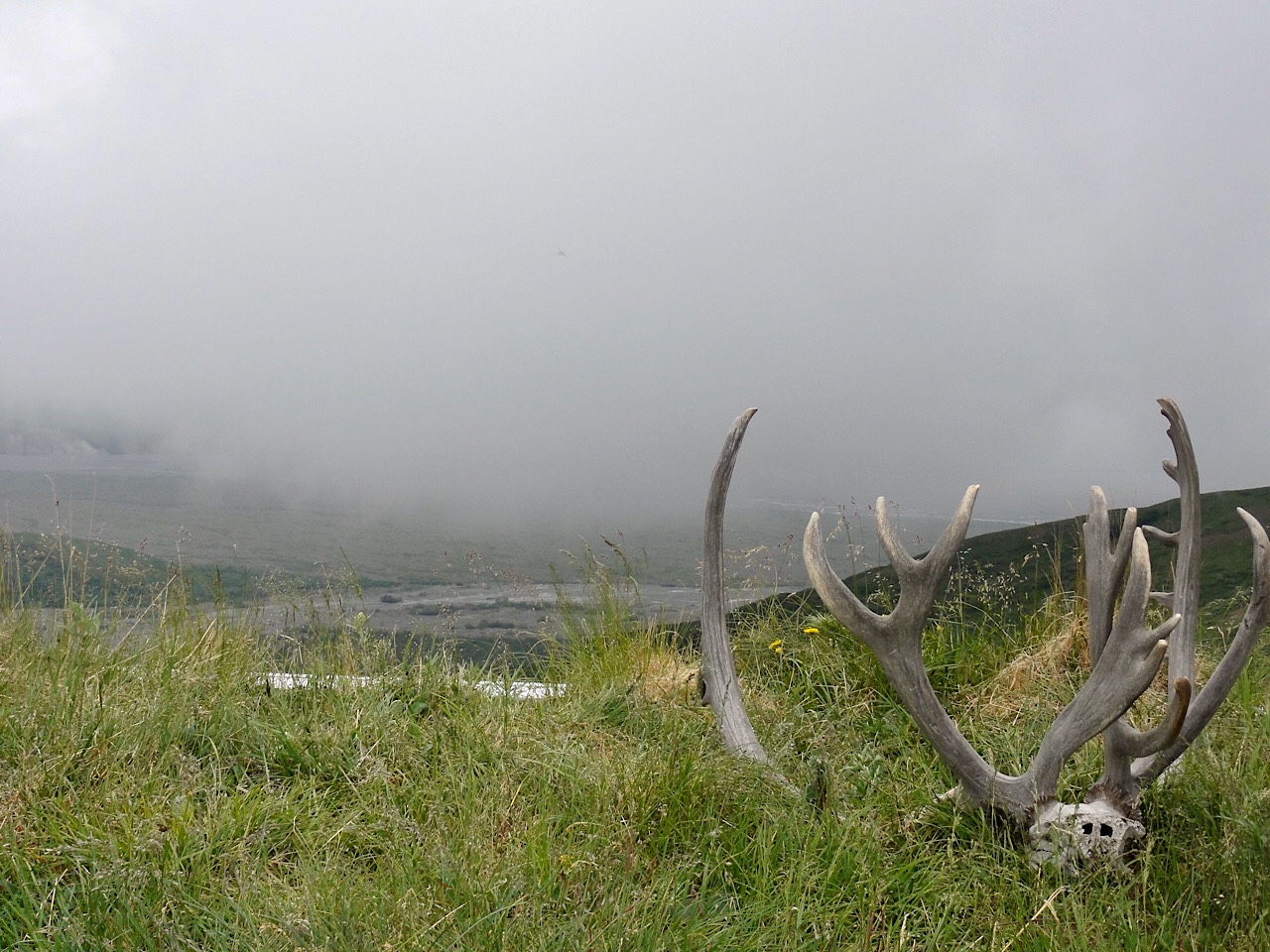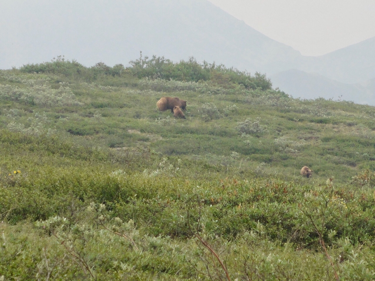 We never got to see Mt McKinley. It was overcast and smoky on the way out, and on the way back the clouds really closed in. We were at the Eliason Visitor’s Center and we watched a cloud come in and cover us and leave visibility at zero. The ride back was rainy and everyone was tired, but we did see a few caribou.