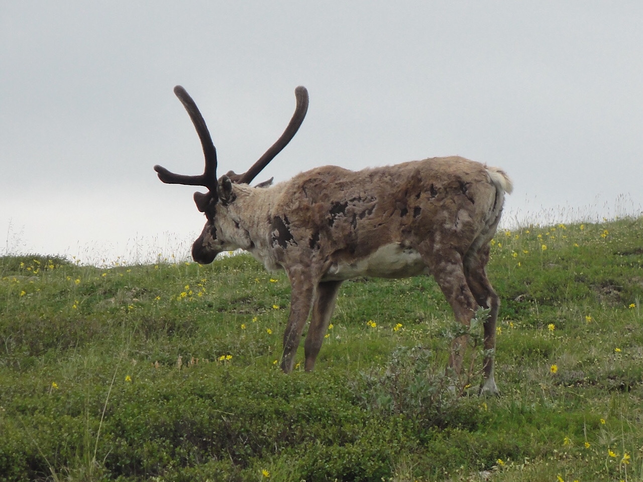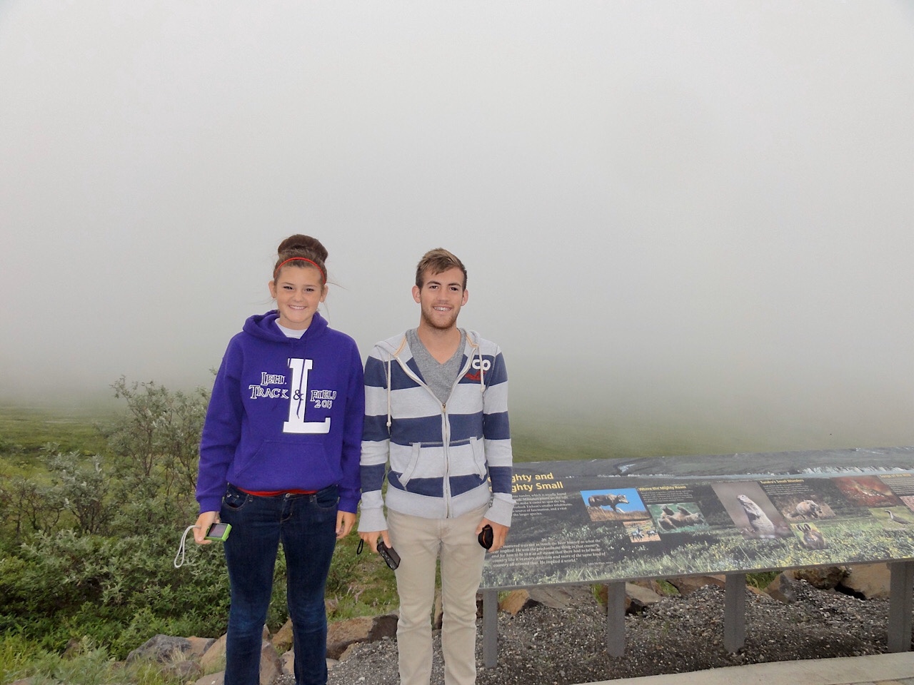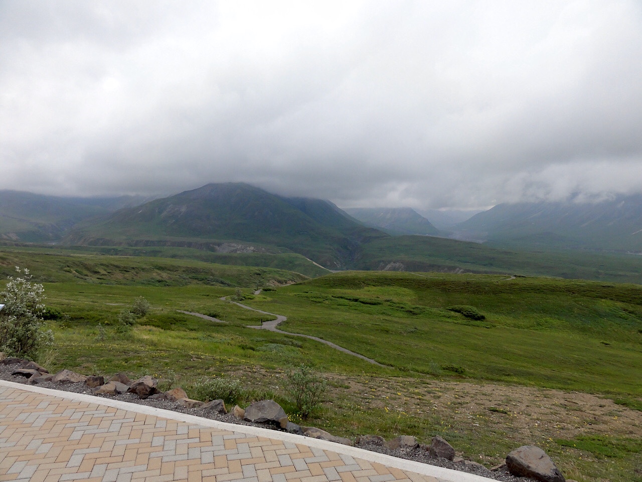 We never got to see Mt McKinley. It was overcast and smoky on the way out, and on the way back the clouds really closed in. We were at the Eliason Visitor’s Center and we watched a cloud come in and cover us and leave visibility at zero. The ride back was rainy and everyone was tired, but we did see a few caribou.