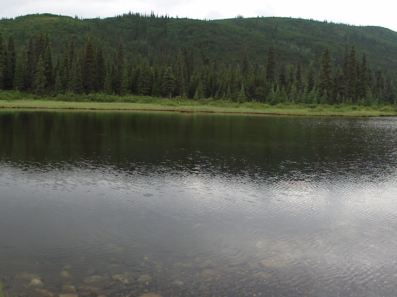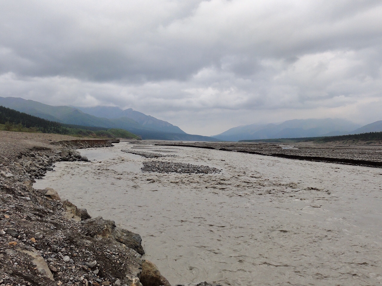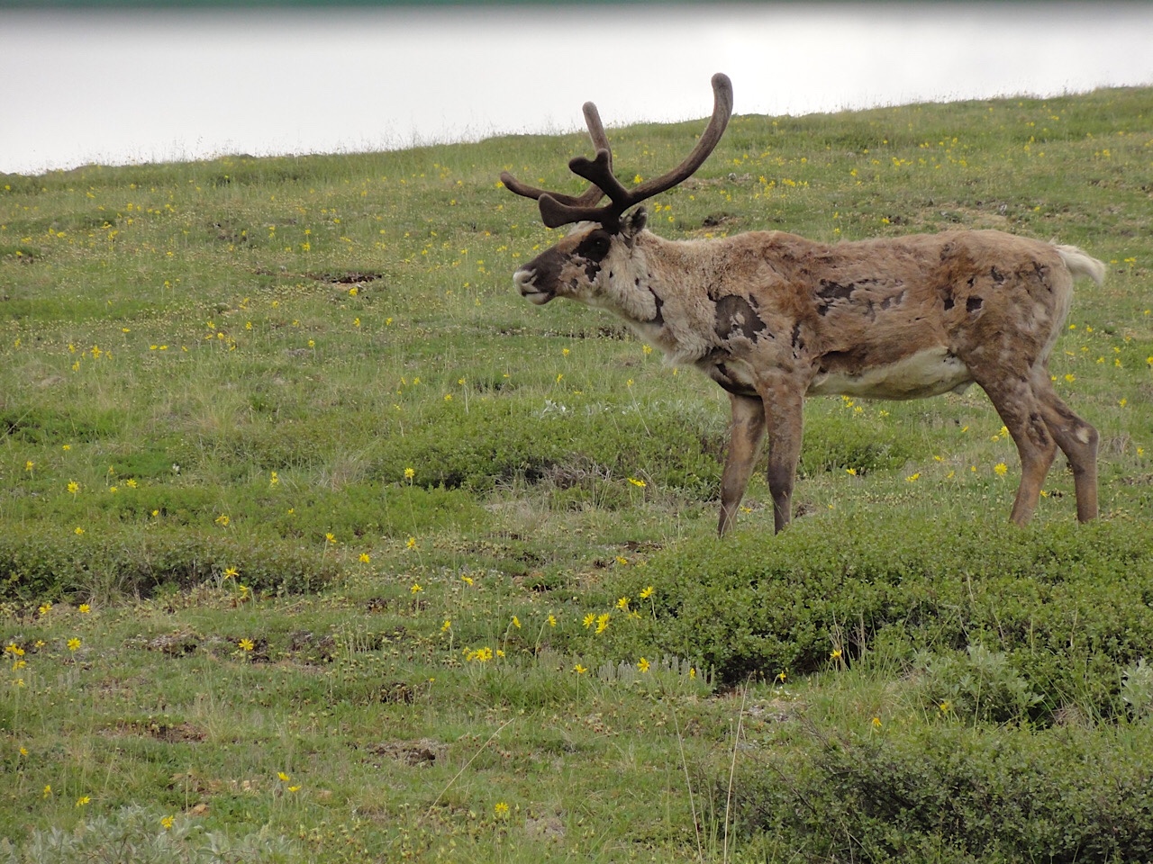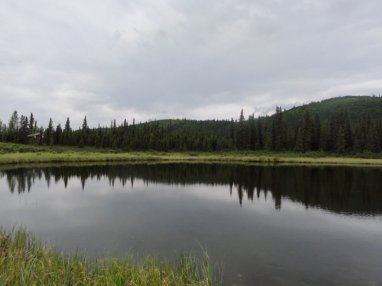 We never got to see Mt McKinley. It was overcast and smoky on the way out, and on the way back the clouds really closed in. We were at the Eliason Visitor’s Center and we watched a cloud come in and cover us and leave visibility at zero. The ride back was rainy and everyone was tired, but we did see a few caribou.