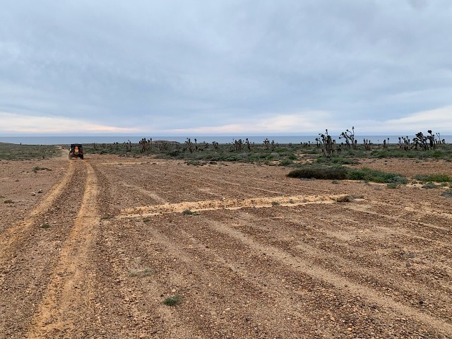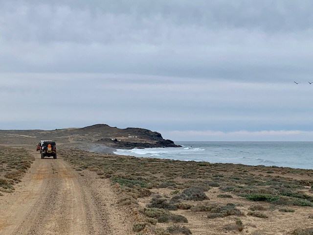 Frenchie, our guide, has driven this road, but in the opposite direction, so he was a little unsure how far we were from Bahia Marron, (Bahia is Spanish for bay) where he wanted to camp that night. The road followed the coast, but was still pretty rough. Frenchie said it was the roughest he had seen, so our progress was slow. We drove for another 3 hours, but were still 45 miles from Bahia Marron. Since everyone was tired we stopped at a beach north of Bahia Blanco. We were near the beach, but behind some sand dunes, so we could not see the ocean, but we heard it all night long. It must have been windy on the ocean because the waves were crashing and it was like living next to a train track. But at camp it was not winding and after dinner we enjoyed the evening talking with others. Again, it was cold once the sun went down, so we were in the van by 8:30 pm and went to bed after 9 pm. Even with the noise of the waves, I slept pretty good. I set the furnace at 55 deg and it kept us from getting too cold at night.