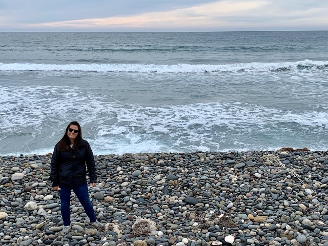 We continued on the dirt road from Catavina to the coast. It was pretty rough and the going was slow. The road continued over several mountain ranges, and we kept expecting to see the coast, but there was just another mountain range. We passes a drug smuggler runway where the government had dug ruts across so the smuggler’s planes couldn’t land. The road was not real difficult, but was just rough enough that we could not go faster that 5-10 mph. Finally around lunch time we saw the Pacific Ocean. We pulled into an empty fish camp that sat above the beach. The beach in this area was made entirely of cobblestones. I have never seen a beach like that. It was very steep and the stones were about the size of a grapefruit. It was very interesting. We ate lunch at this beach and then continued down the road.