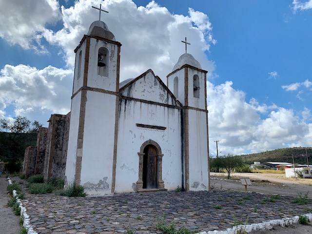 We continued down the road looking for Mission de Passion. It was just the ruins of the mission buildings, but we could not find it along the road. We had the GPS coordinates (24.8875399, -111.0305679), so we knew we were close. We had passed the point and were turning around on the road when a rancher came out and waved us down and wanted to know if we wanted to see the ruins. He was yelling across the arroyo and Eva was yelling back. We finally figured out that the ruins were on his property and he wanted to show them to us.