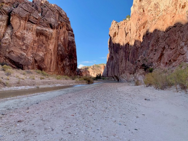 Eva and I walked up the Paria riverbed, but the water was higher than last time, so we had to wade across the river 4-5 times. When we got near the Box, Eva decided to wait for me while I hiked up the canyons. However, all of the canyons were steep, rugged and full of boulders. I could barely climb up the canyon, so I don’t know how they drove horses up the canyon. I never found the camp, and I had told Eva I would be back down by 4 pm, so I gave up and hiked back down to the river and caught up with Eva. We made it back to the van and drove north another 10 miles before finding a side road with some nice camping spots.
