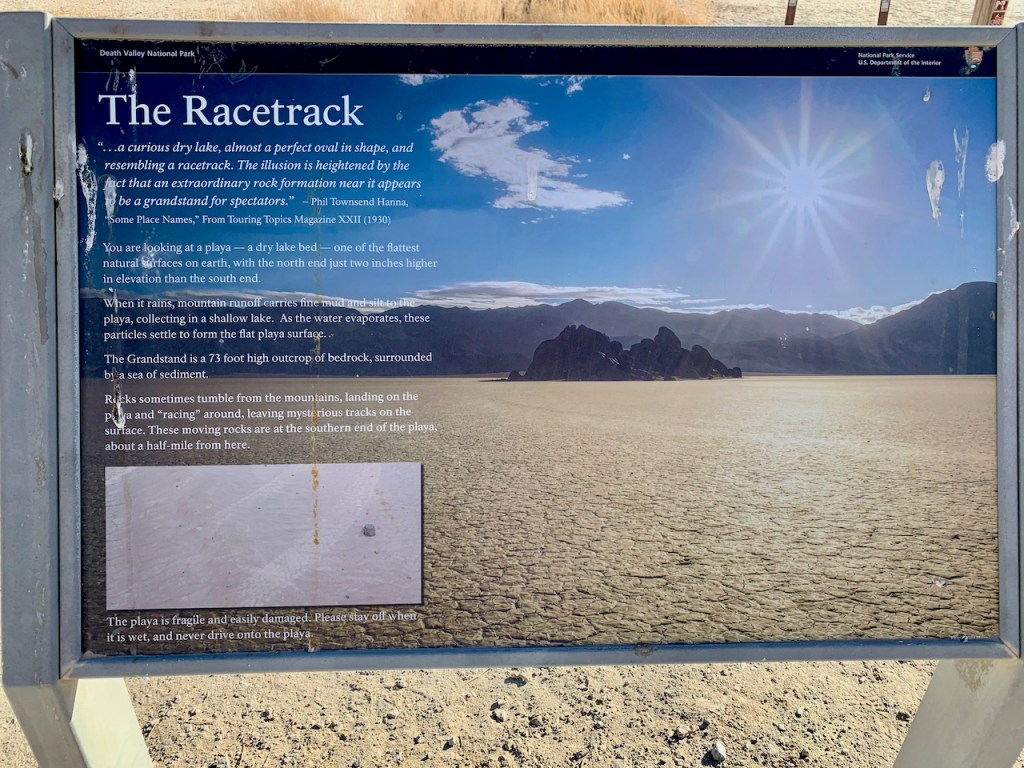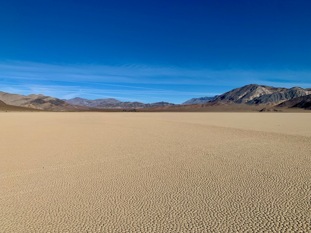 After breakfast we drove from Teakettle Junction to the Racetrack. The Racetrack Playa is an almost perfectly round dry lake bed that resembles a racetrack. It is one of the flattest natural surfaces on earth with the north end only 2 inches higher than the south end, around 3 miles away.