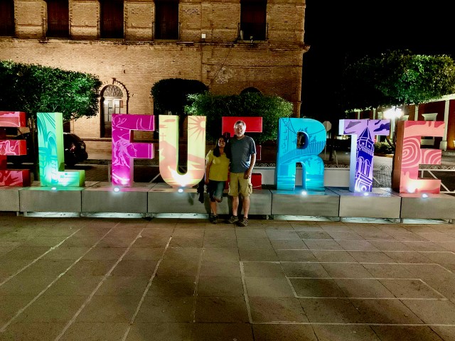 The final section was a little flatter as we finished the ride into El Fuerte, arriving around 8 pm. Frenchie, Eva and I rode in a taxi, driven by a wanna-be race car driver. I felt lucky that we made it to the hotel alive as he sped the 6 kilometers to town. We stayed at the El Fuerte Hotel, a very nice hotel that appeared to be an old hacienda that had been remodeled into a hotel. The hotel was filled with antiques and had several courtyards with many balconies. We ate dinner at another nice restaurant and since it was such a nice warm evening, we took a walk around the town square before returning to the hotel.