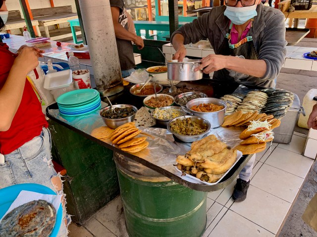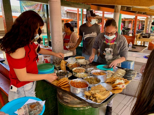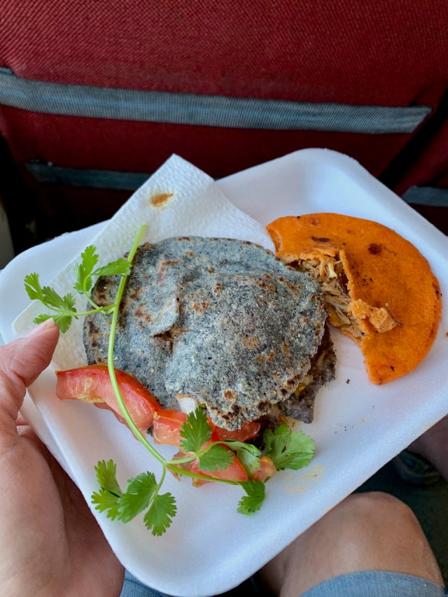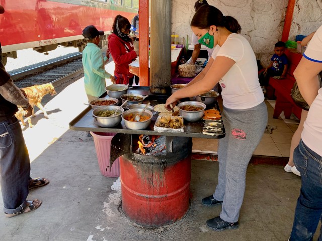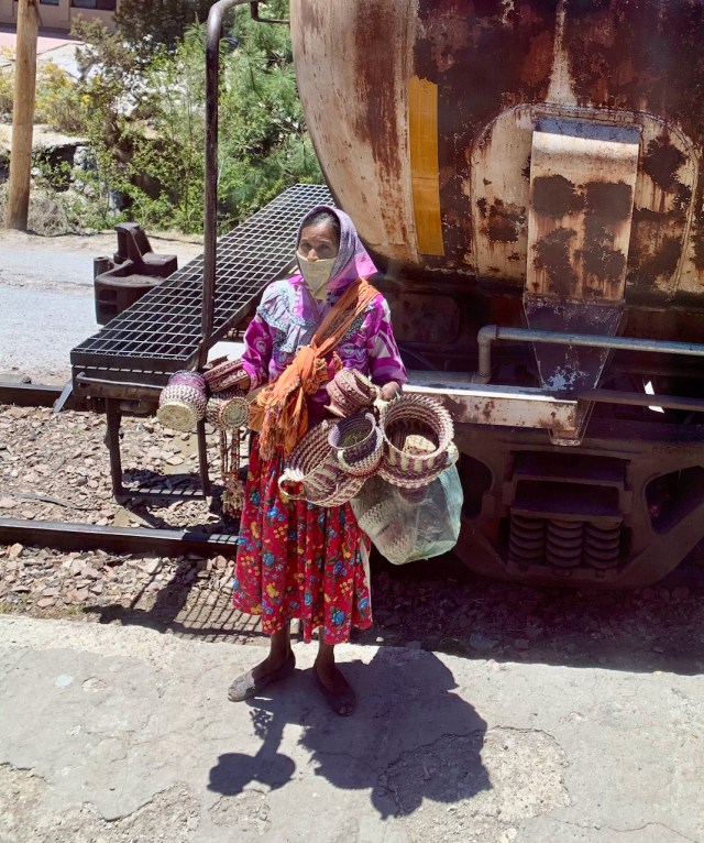 We had a 20 minutes stop at Divisadero where there was a mad rush from the train to the vendor area to get lunch. There were several vendors selling gorditas (small pita sandwiches made from different colored corn tortillas). They cooked the food on 55 gallon barrels with a fire underneath. We hurried to get the food and ate fast, as we didn’t want to miss the train. We worried too much, as there was plenty of time before the whistle blew and the train left the station.
