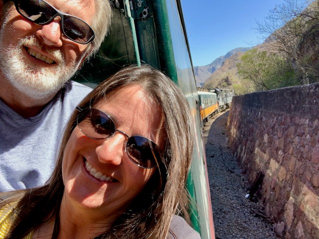 The adventure today was something we had been looking forward to since we heard of Copper Canyon. El Chepe is one of the most famous train rides in the world. The Chihuahua to Pacific railroad traverses some of the most rugged and scenic country in North America. The tracks run from Chihuahua to the Sea of Cortez near Los Moochis, but the most exciting and beautiful part is from Creel to El Fuerte. This section descends from 8000’ elevation at Creel to near sea level at El Fuerte. The railway clings to the sides of sheer cliffs and descends in gigantic loops and tunnels as it plunges from one canyon wall to the next. The total railway had 37 principle bridges and 87 tunnels between Chihuahua and the sea, with most in the 170 miles section that we rode. This is over 11 miles of tunnel and 2.25 miles of bridge. The railway took 90 years to build and was finished in 1961.