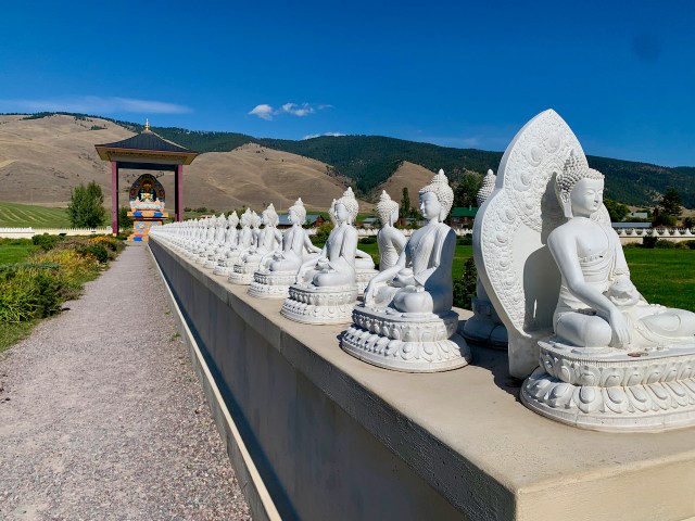 We continued north through the wide Montana valleys to Arlee, MT. Just outside of Arlee is the Garden of 1000 Buddhas. The is a spiritual site that contains 10 acres of gardens and at least 1000 statues of Buddha. It was very interesting and we enjoyed walking through the gardens.
