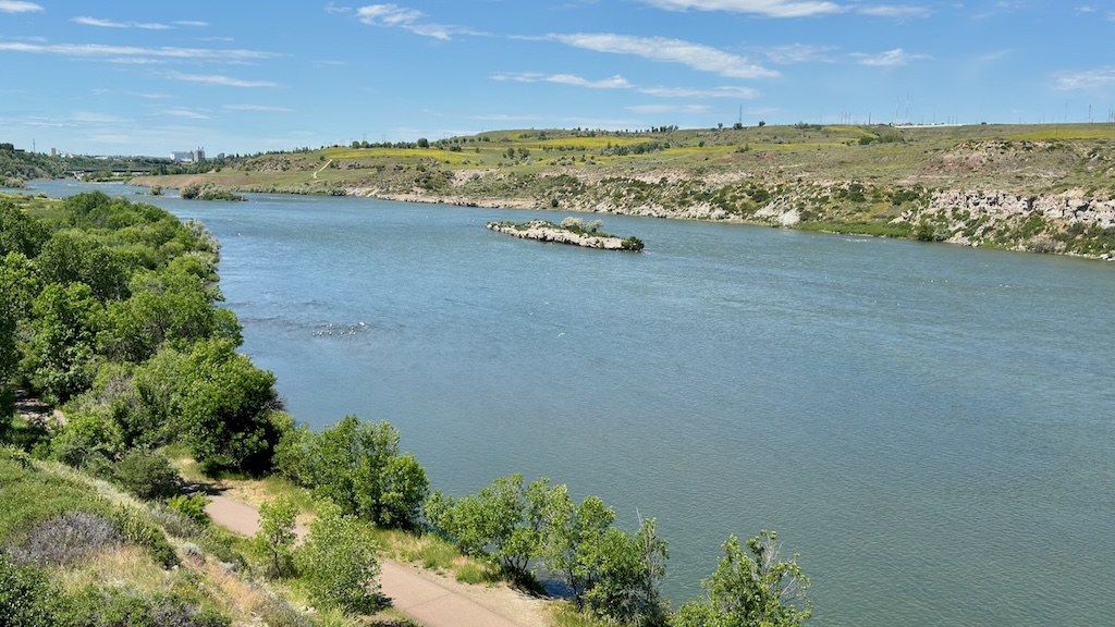 We continued up I-15 to Great Falls. I have always wanted to see the waterfalls on the Missouri River. Our first stop was Black Eagle Falls. It was a little disappointing. Since we are in early summer, I was expecting the water flow to be higher. However, most of the water is diverted to the hydroelectric plant and only a little was going over the falls.