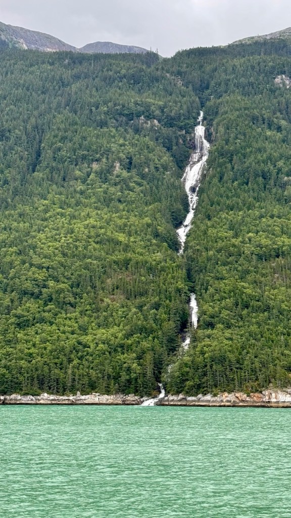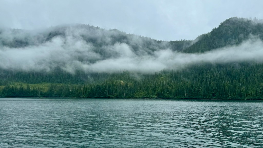 This morning we scheduled a cruise to see wildlife and the Mears Glacier. However, it was rainy and a little cold. We dressed in warm clothes and brought our rain clothing. It was raining and cloudy when we left the harbor, so we did not get many pictures. However, it slowed down a bit as we went through the day, but it kept raining all day.