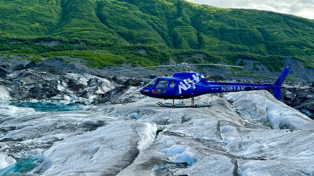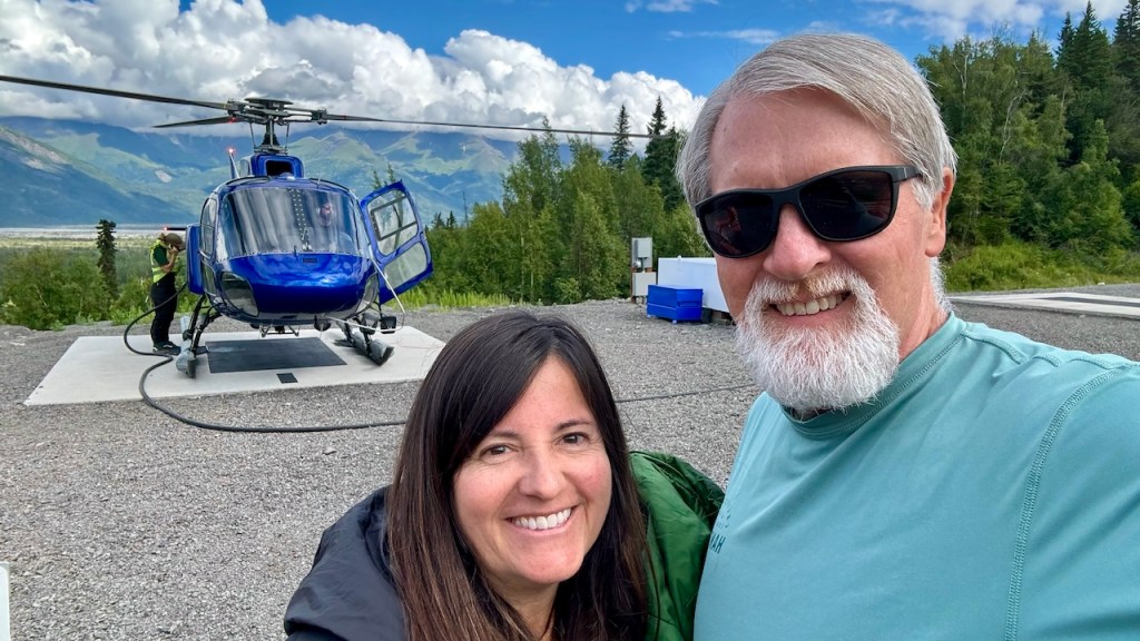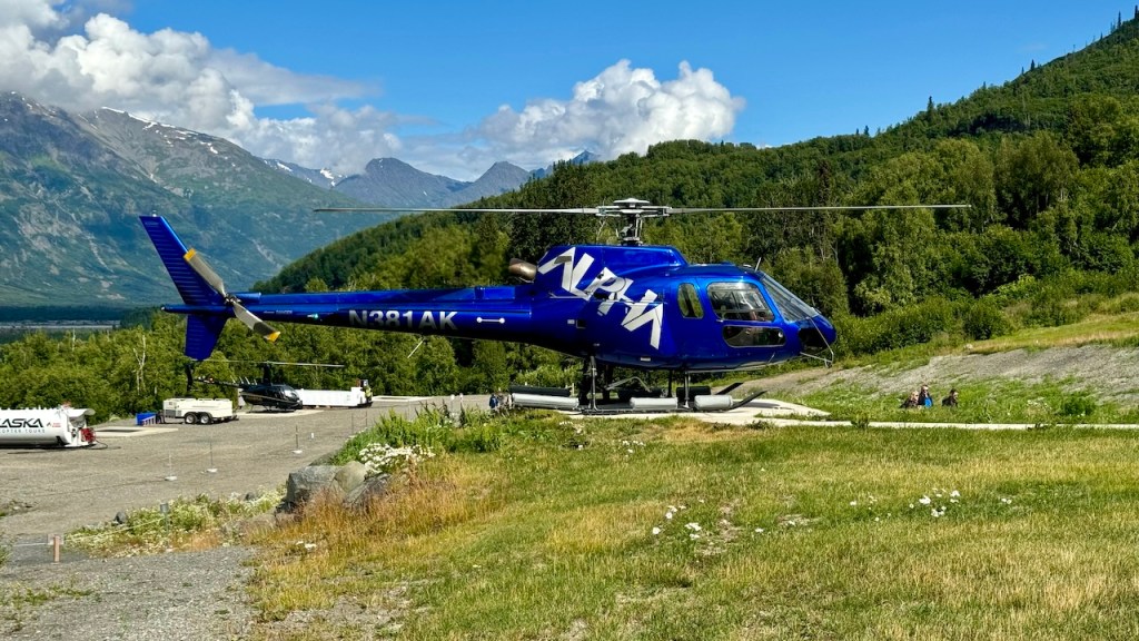 We had a 2-hour helicopter tour of several of the glaciers in the area. After a short safety talk we boarded our AStar helicopter with the pilot and another couple from Arkansas.