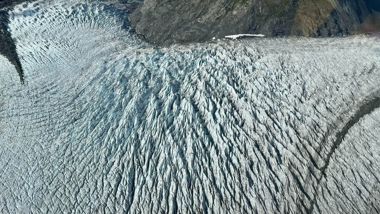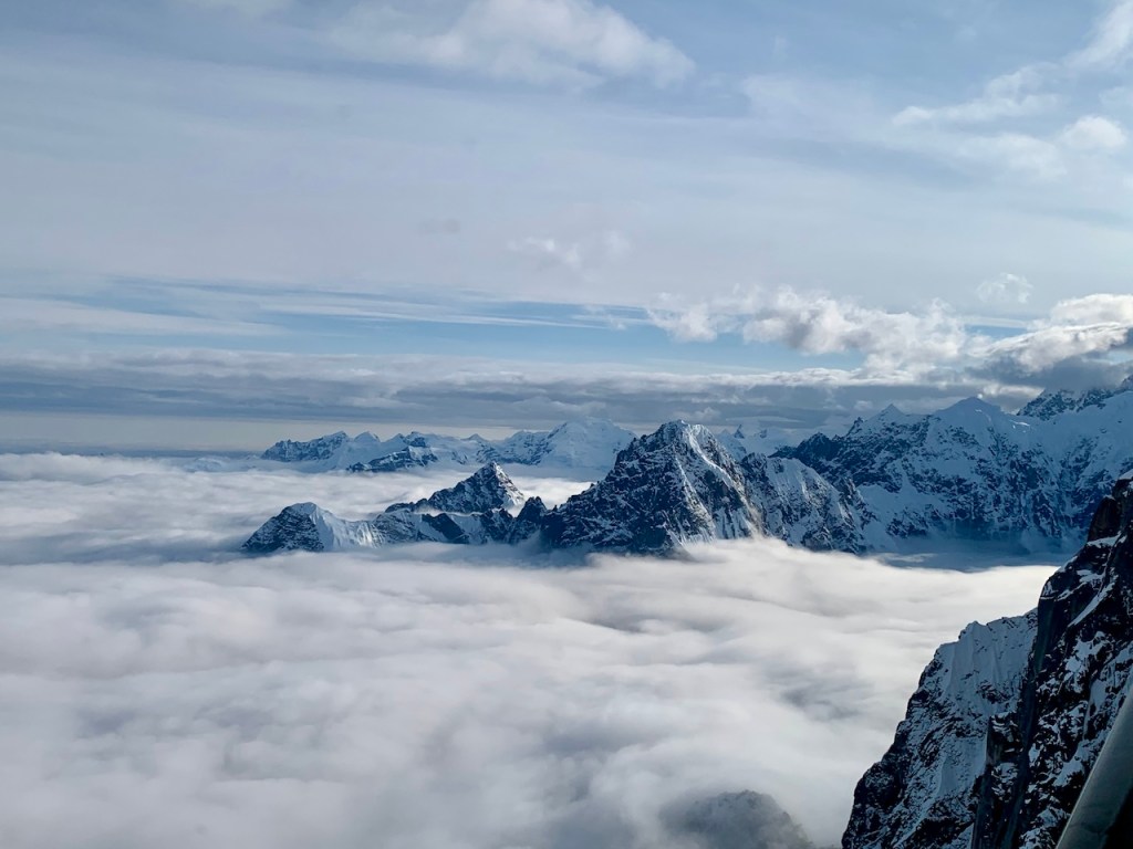 After 20 minutes we loaded up and Christian flew us over the glaciers to the top of the mountain. We followed the glacier up the mountain and were able to see the many crevices and cracks in the ice. It was an amazing view and flying over the ice was a lot of fun.