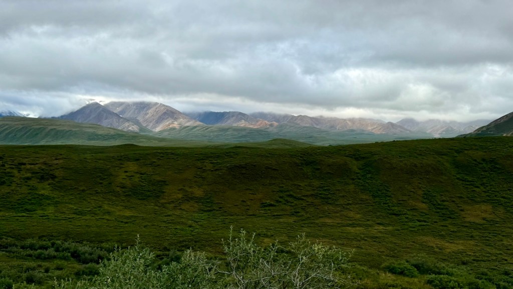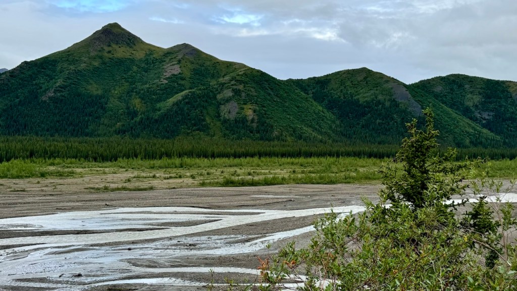 Today was our Tundra Wilderness Tour in Denali National Park. This bus tour will take us 43 miles into the Wilderness area of the park. It used to go 93 miles, but in 2021 a landslide destroyed a section of road at mile 45. The soil there is so unstable that they are building a bridge over the destroyed highway. It will not open for guests until 2026 or 2027.