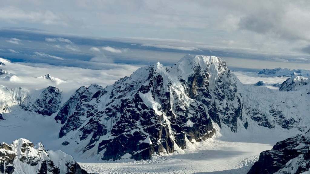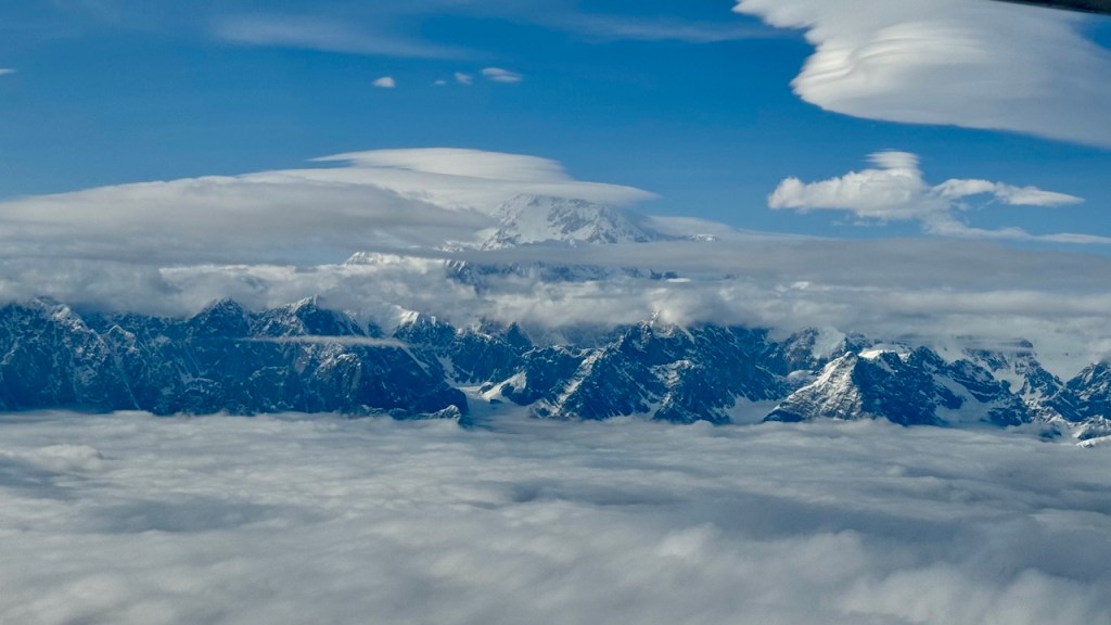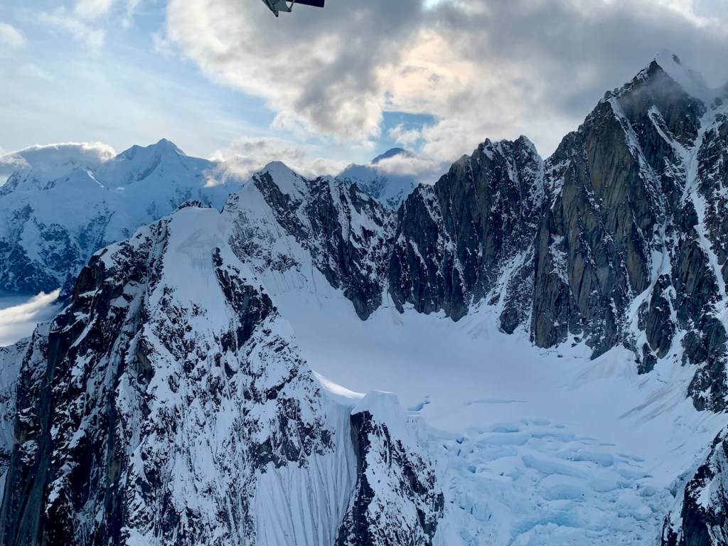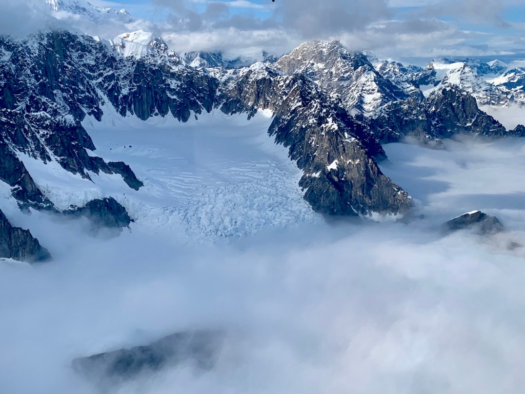 Our flight around Denali was a 2-hour flight in a 10 seat Otter plane. We were in one plane with Rob, Michelle, Stephanie and Mike. The rest of them were in another plane. It took 20 minutes to fly to the part of the Alaska Mountain Range where Denali is located. There were some cloud layers, but our pilot was able to fly between then and we were able to see some excellent view of Denali (the tallest mountain in American Continent), the rest of the mountain range and many glaciers.