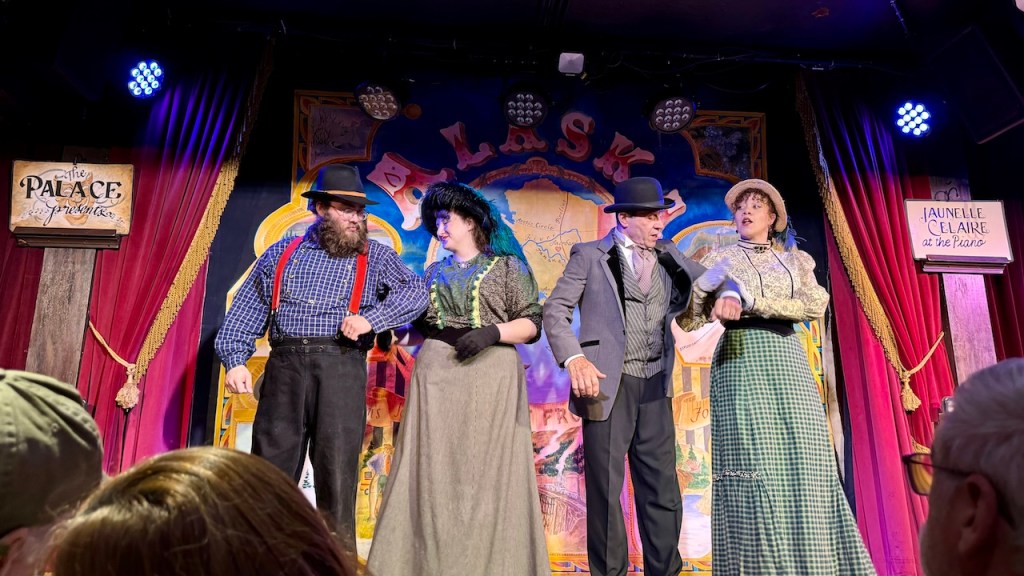 In the evening we went back to Pioneer Park and had dinner at the Alaska Salmon Bake and ended with the show at the Palace Theater. The food was okay and the show was pretty good. We spent another night in the parking lot at the park. It was a lot cooler and a bit quieter than last night.