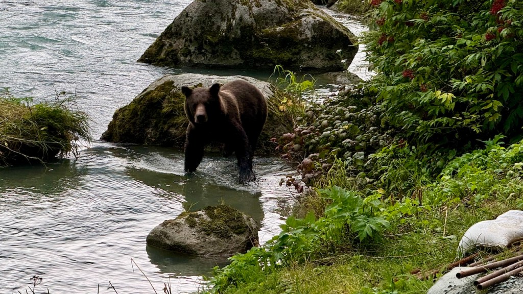 We called the kids after lunch and then we drove back out to Chilkoot St Park and found a parking spot. We rested around camp until the evening, and then we walked down to the spot where bears are usually found.