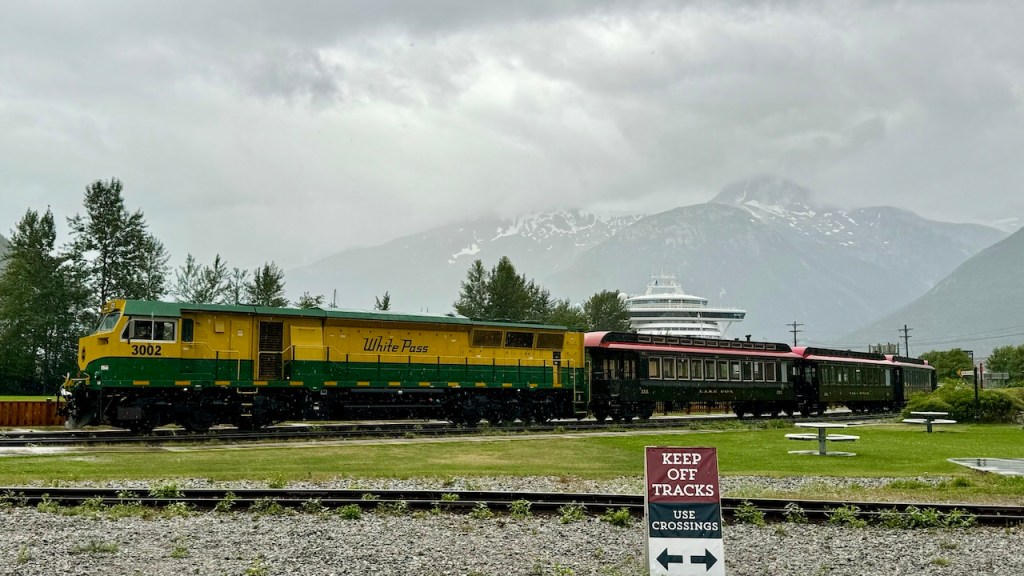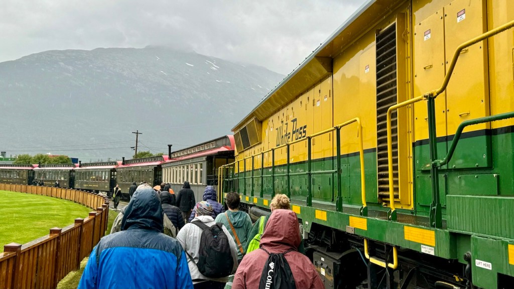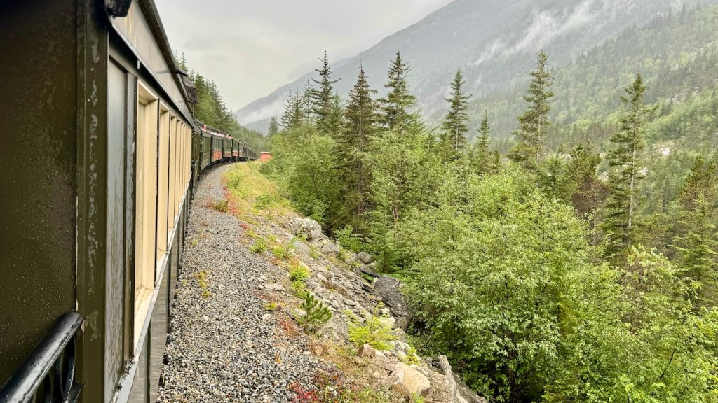 We needed to be at the train depot at 3:30 pm for our 4 pm trip on the White Pass and Yukon Route (WP&YR) Railroad. The WP&YR was finished in July of 1900 after 26 months of construction by 35,000 men. The train ran from Skagway to Whitehorse and was initially used to access the Yukon goldfields, but was mostly used to ship freight and passengers to the interior of the Yukon Territory.