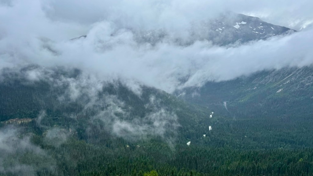 It was raining with clouds in the mountains, so we were worried about the trip and how much we would be able to see in the rain. But it was not a problem as the views were pretty as we rode into the clouds.