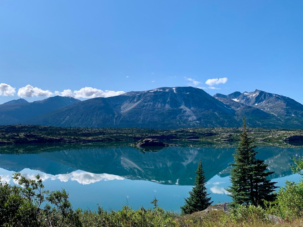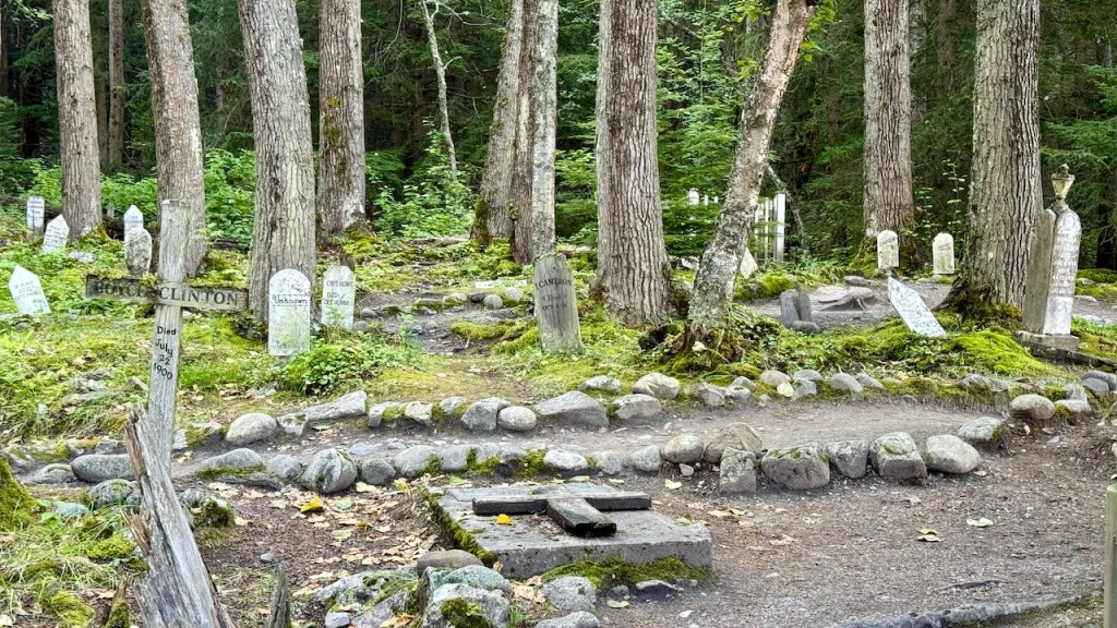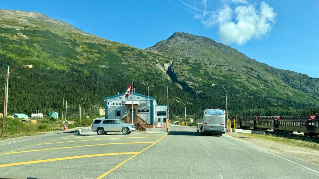 We left Skagway around 9 am but stopped at the old town graveyard on the way out of town. We drove the highway up the mountain and over the White Pass, crossing into Canada one more time. It was mostly a day of driving, and we continued east until we reached the Stewart Cassiar Highway (BC 37) and turn south. We will spend a few days on this highway as we head south. We camped near Pinetree Lake just off the highway.