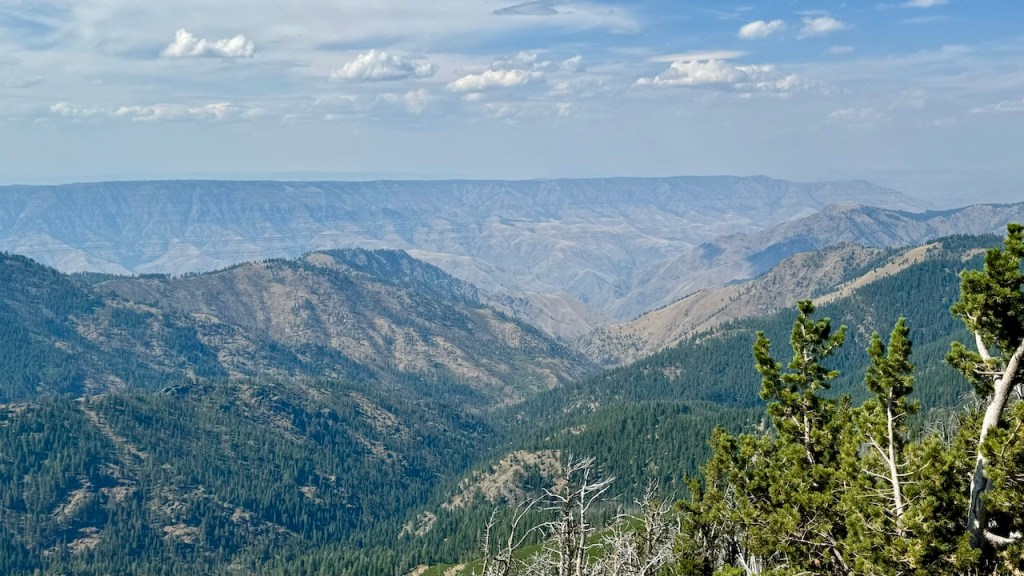 The next day we stopped at the two museums at the state park and then drove to the Heaven’s Gate Overlook of Hells Canyon, just outside of Riggins, ID. To get to the top of the mountain we had to drive 18 miles of rough road to the overlook. The road was not too bad, but the overlook was disappointing. I was expecting a better view of Hells Canyon and the air was pretty smoky so the views were not that good.