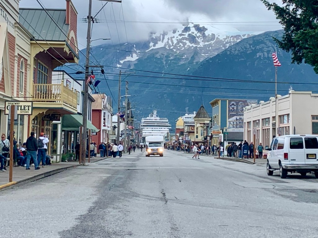 We were done with our time in Haines, so we took the 12:45 ferry to Skagway. It is only an hour-long ferry trip, but they ask you to arrive 2 hours early, so it takes 3 hours. The ferry trip was nice, and we stayed on the open deck for most of the trip.