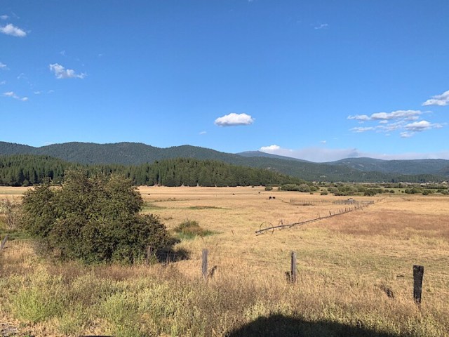 The drive north was very pretty. It would alternate between deep forested areas where you went over the mountain passes (4-5000’) and then drop into big grassy valleys with ranches and farms (at about 3-4000’) and a couple of small towns. It was a pleasant drive with a nice road that was not too steep.