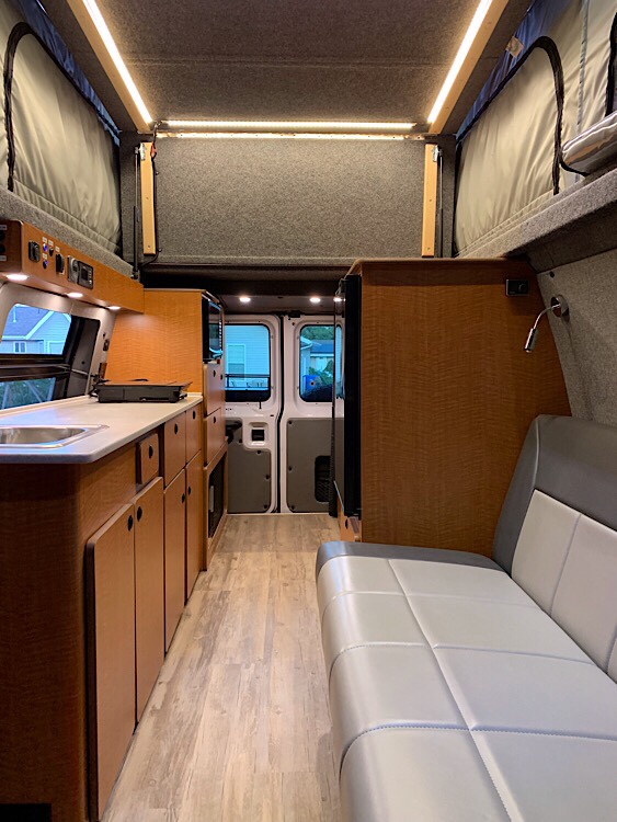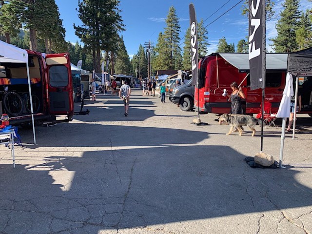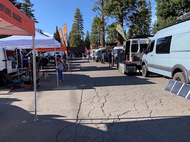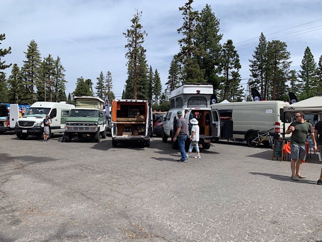 We got up and ate breakfast and cleaned up. We left the campground around 9 am. It was a 40 minute drive to Homewood Resort, on the west shore of the lake, where the Adventure Van Expo is held. This is an event where they have a lot of vendors displaying their equipment and campervan conversions. There were about 100 vans on display, but most were built by professional builders.