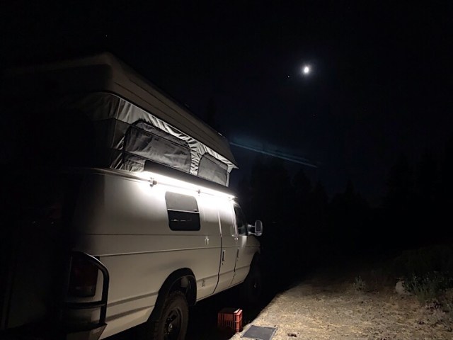 The night went pretty good. We kept the windows closed, so the temperature inside was just right. By morning another van had pulled in and camped 50 feet from us. They must have come real late and very quietly.