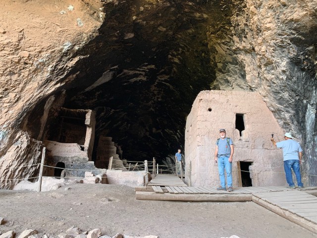 After eating we continued down the dirt road next to the river to Satevo. This was a small town of 500, but was the home to the “Lost Mission”, a catholic church built in the 1600’s. As we parked a man came up with the key and for a small fee, allowed us to enter the church for pictures. It is still an active church, even with the cows that wandered through the grounds.