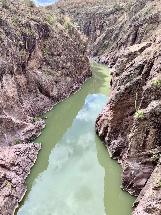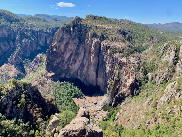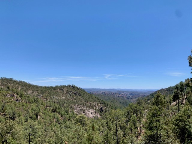 I had seen pictures of the road that descend from the top of the mountain to the river just outside of Batopilas, and was looking forward to the drive. The road was paved, but it has over 100 switchbacks to get you down the steep mountain. It was a beautiful drive that took us from over 6000’ to 3000’ in just a few miles. The views of the surrounding mountains were beautiful, but you had to keep your eyes on the road as you twisted your way down the steep cliff.