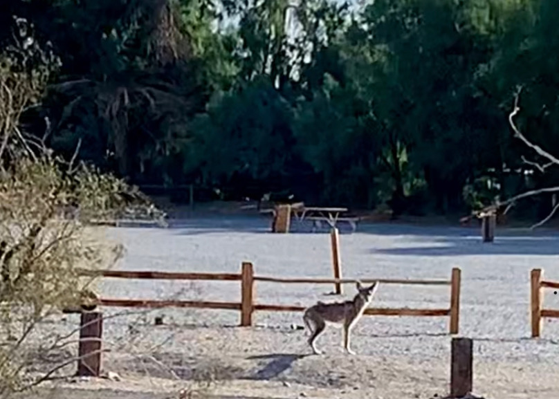 A lonely coyote walked by the visitor center’s parking lot while we ate lunch.