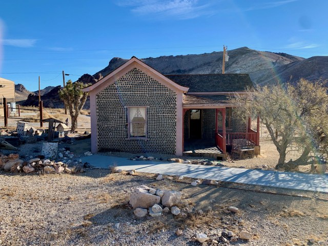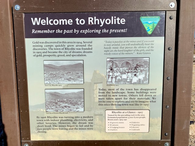 We then continued to Rhyolite. The town was founded in 1904 and by 1908 up to 8,000 people lived there. The mines ran out by 1910 and by 1920 the population was only 14. Today, there are a couple of hosts living in trailers and one house that looks like it was occupied. The government owns much of the area and it is maintained as an archaeology preservation site.