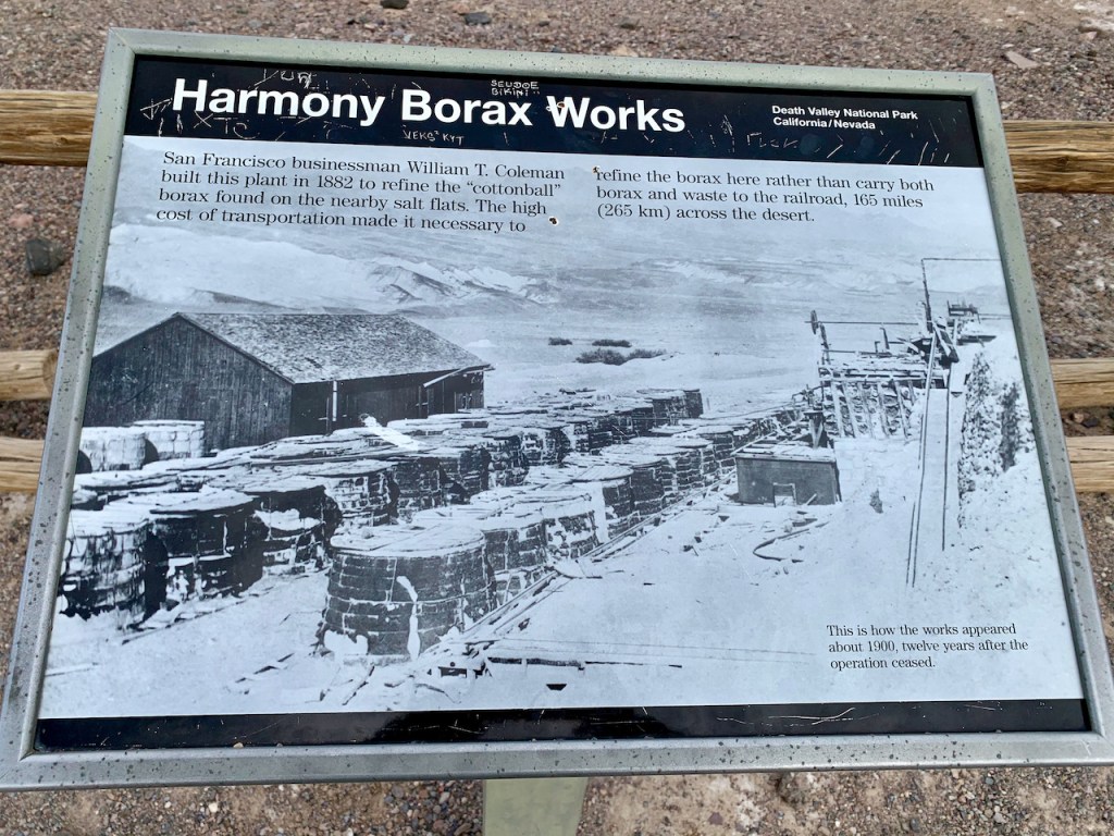 We next stopped at the historic site of a borax mine (Harmony Borax Works) before continuing to the Furnace Creek visitor center. We were able to get cell phone reception again and we spent some time taking care of business.