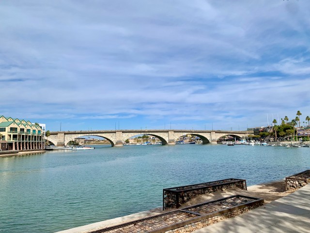 It was a windy night with lightening and thunder, but no rain at our camp. In the morning we drove into Lake Havasu City and stopped at London Bridge. We walked the waterfront and took a few pictures. It was sad to see all the closed businesses. There only a few people in the area, compared to last year when the waterfront was packed.