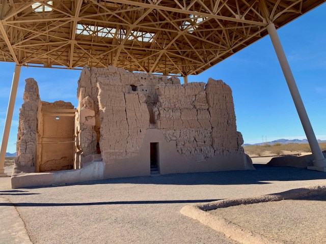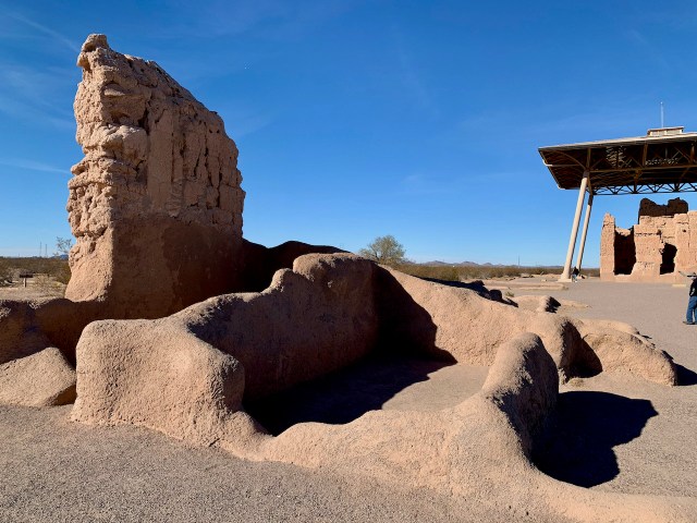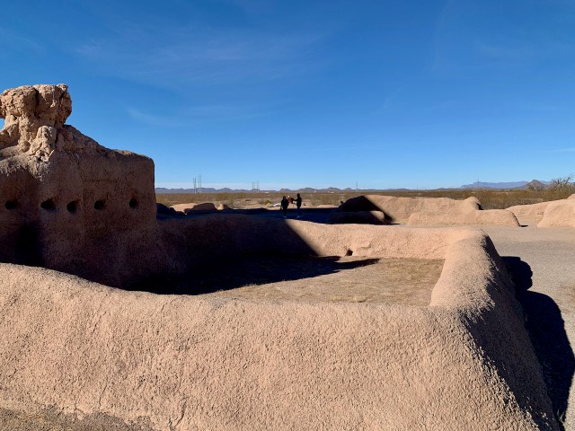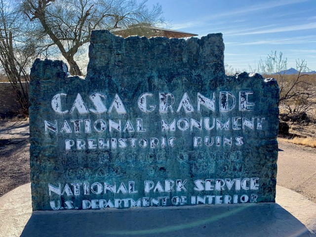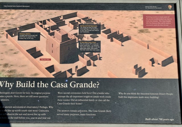 Wednesday we left Hilda’s house before noon and drove south towards Tuscon. It was a sunny day, but still cooler than we were hoping for. We stopped at the Casa Grande Ruins National Monument, in Coolidge AZ.