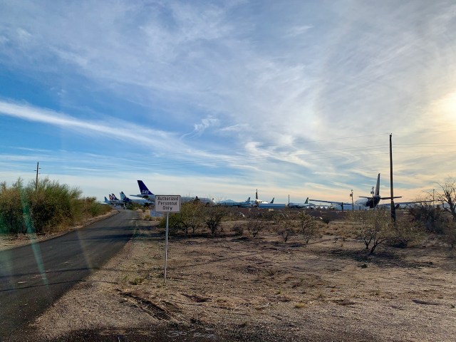 We only had about an hour to visit the monument before it closed, but it was worth the visit. We continued south towards Tuscon, but camped for the night in Ironwood National Forest. As we drove into the cactus forest, we drove past one of the airplane storage locations in the area. Visitors are not allowed, but we took a few pictures over the fence.