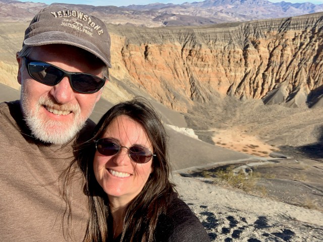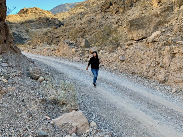 We drove back to Teakettle Junction and turned west on Hidden Valley road to find our way out of this northern part of the park. It was a beautiful ride through canyons and valleys. The trail ends with a steep narrow road across a couple of mountain ranges. There were many switchbacks and steep areas, but the road surface was pretty smooth so it was a fun ride. Once over the mountains we descended into Saline Valley and back to the paved road. Our drive across the northern part of Death Valley was two days long and ~150 miles of driving with only 24 miles that were paved. We saw very few people and we saw a lot of beautiful desert valleys and mountains.