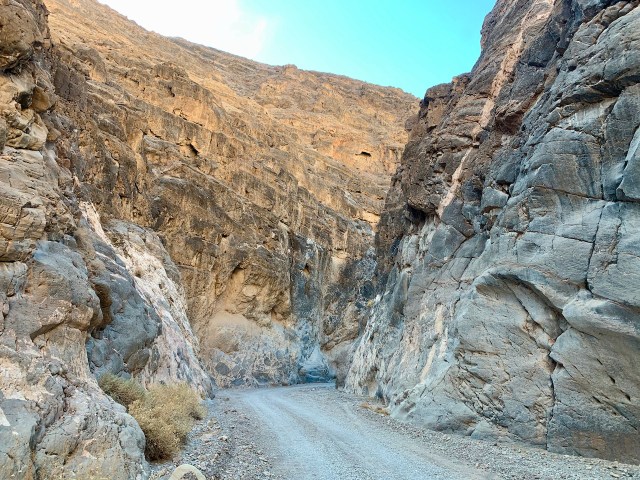 After leaving Leadfield the fun section of the road begins. The road weaves through a narrow canyon and it continued about 7-8 miles down to Death Valley. The last couple of miles is very scenic as the canyon narrows to 20 feet wide, with canyon wall rising over 100 feet.