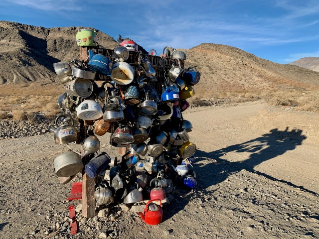 Teakettle Junction has a sign that is covered in teakettles. Apparently, in olden days, a teakettle meant that water was close by. It is now a tradition to hang teakettles on the sign. We considered it a teakettle shopping area and picked up a few free kettles. Not really, but it was interesting to see all the pots that people had left. Most of them were signed and dated. It looks like the rangers clean the sign post off every 2-3 months as no pots were older than November of 2020.
