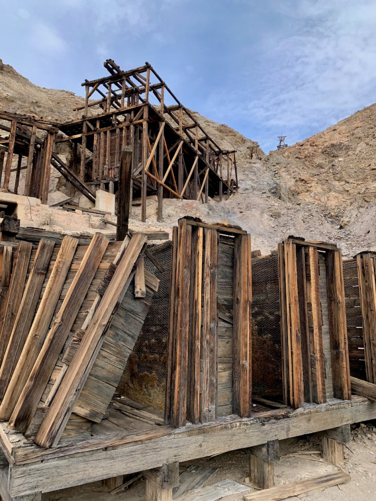 The first stop was at the Keane Wonder Mine site. Much of the old mining structures were preserved, along with an aerial tramway that carried the ore from the mine to the mill. The Keane Wonder mine was one of the more successful mines in the area and pulled more that one million dollars of gold out of the mountain. For this reason it was known as the ”King of the Desert”.