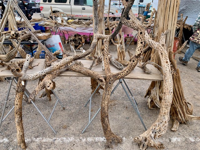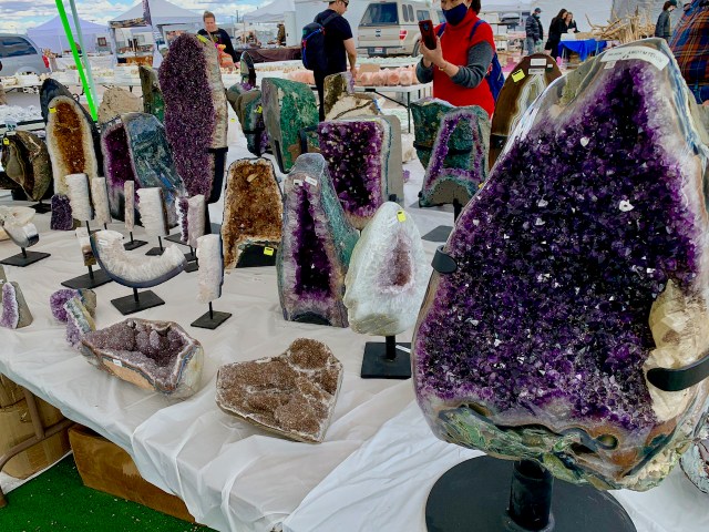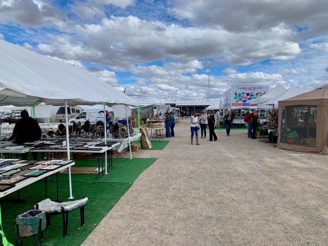 We stayed for 10-15 minutes and at that point we had enough of the show. We loaded up and started driving out of town. Once we passed over the freeway, we saw a huge area of tents, people and cars. We realized that we had parked at the overflow area of the Gem and Mineral Show. On the south side of the freeway was the main show area. It was at least 10x the size of the area we stopped at. The road into the parking area was backed up (and we had seen enough rocks), so we didn’t stop or take pictures. There are a lot of people how like looking at rocks.