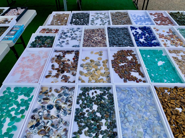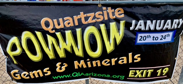 We stopped in Quartzite, AZ for gas and to eat lunch. We saw an area with tents, so we drove by and parked at the Quartzite PowWow Gem and Mineral Show. There were many booths of rocks and stones. We thought they would have other items, but it was mostly rocks.