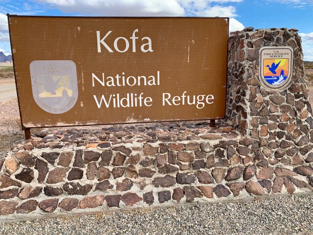 We about 25 miles south of Quartzite to KOFA National Wildlife Refuse. KOFA is named after the King OF Arizona mine which is inside the refuse. We first stopped at the Spiral Labyrinth. Someone “carved” at perfect spiral in the desert, just outside of KOFA.